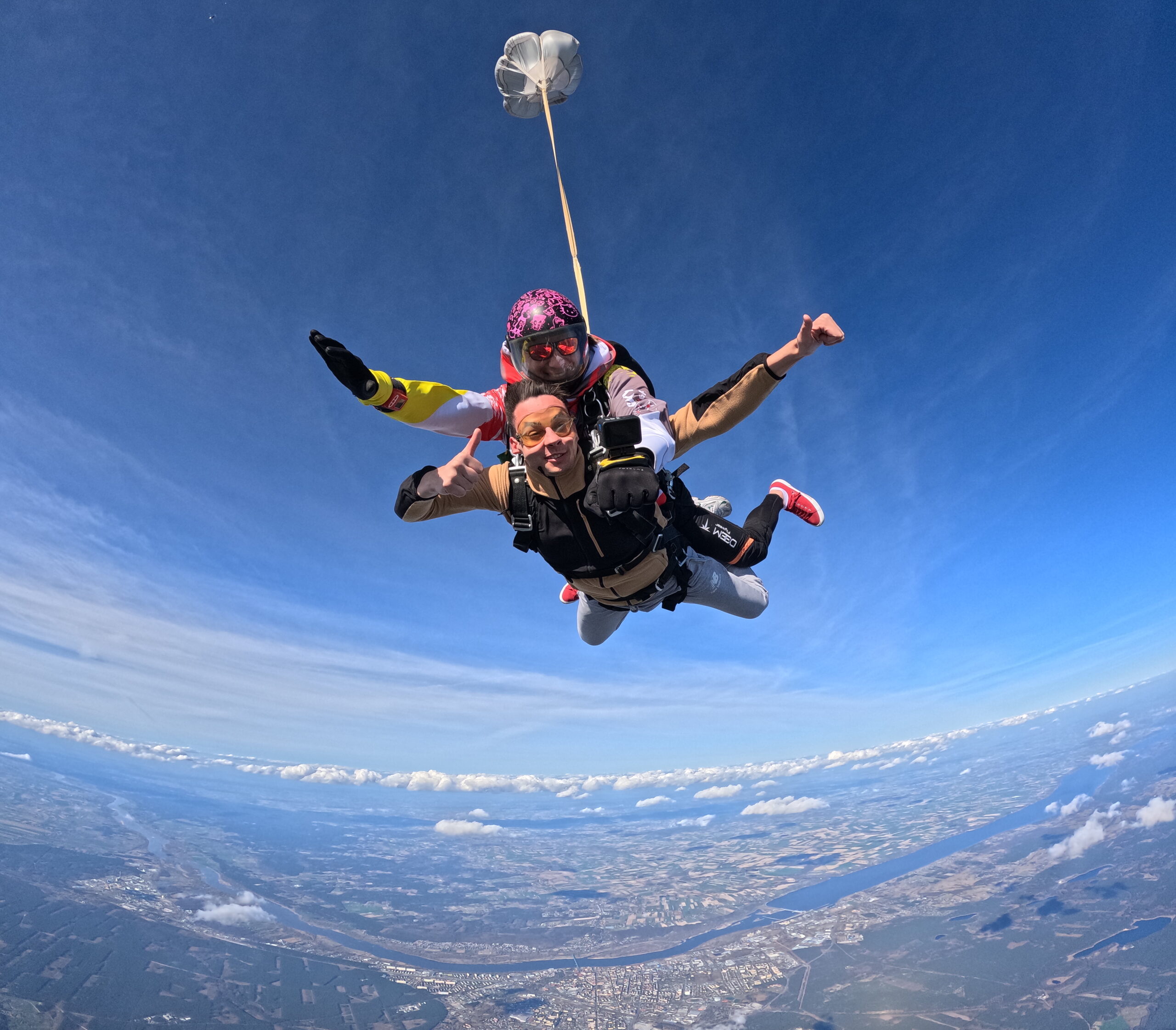 spadochronowych Sigma firmy UPT. Jest to najdroższy i najlepszy sprzęt spadochronowy na rynku, zapewniający wygodę pasażera (uprząż tandemowa) oraz najwyższe bezpieczeństwo podczas skoku tandemowego. Spadochrony tandemowe, po każdym skoku układane są przez kadrę doświadczonych układaczy.