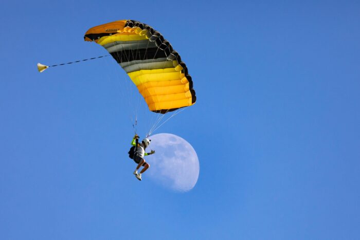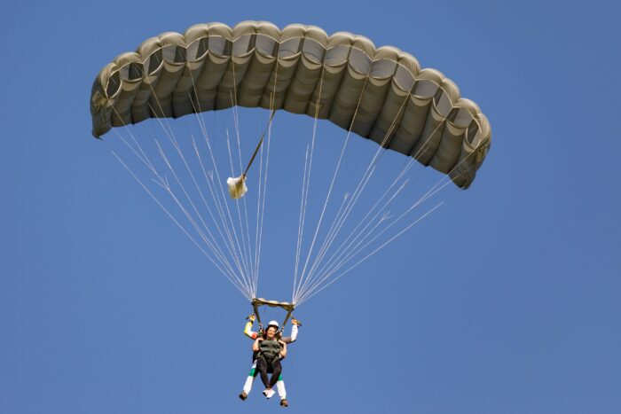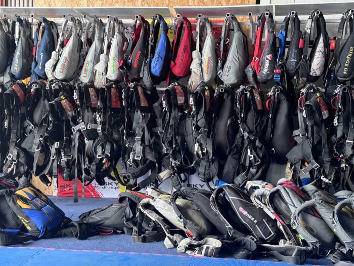 Szkolenia spadochronowe AFF odbywają się z wykorzystaniem spadochronów PD Navigator oraz NzAerosports Student o rozmiarach dostosowanych do wagi studenta.